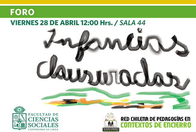 El Foro "Infancias clausuradas" se realizará este viernes 28 de Abril a las 12.00 horas en la sala 44, del cuarto piso de la Facultad de Ciencias Sociales de la Universidad de Chile.