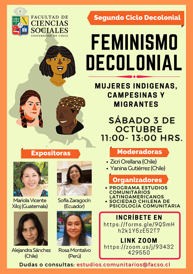 El próximo sábado 03 de Octubre, a las 11 horas, se realizará el 2° Ciclo Decolonial desde el Programa de Estudios Comunitarios Latinoamericanos, organizado por el Programa Estudios Comunitarios Latinoamericanos Sociedad Chile de Psicología Comunitaria.