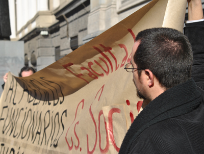 Con un desayuno tri-estamental, convocado por el Personal de Colaboración de FACSO, se dio inicio a la instancia de protesta que se extenderá durante toda la semana. Académicos, estudiantes y funcionarios pudieron compartir junto a una larga mesa y acompañados de las canciones del Grupo Musical de Funcionarios de FACSO "Los Derrepente". Además pudieron coordinar las actividades de la mañana y pintar pancartas de protesta (Ver Galería de Fotos).