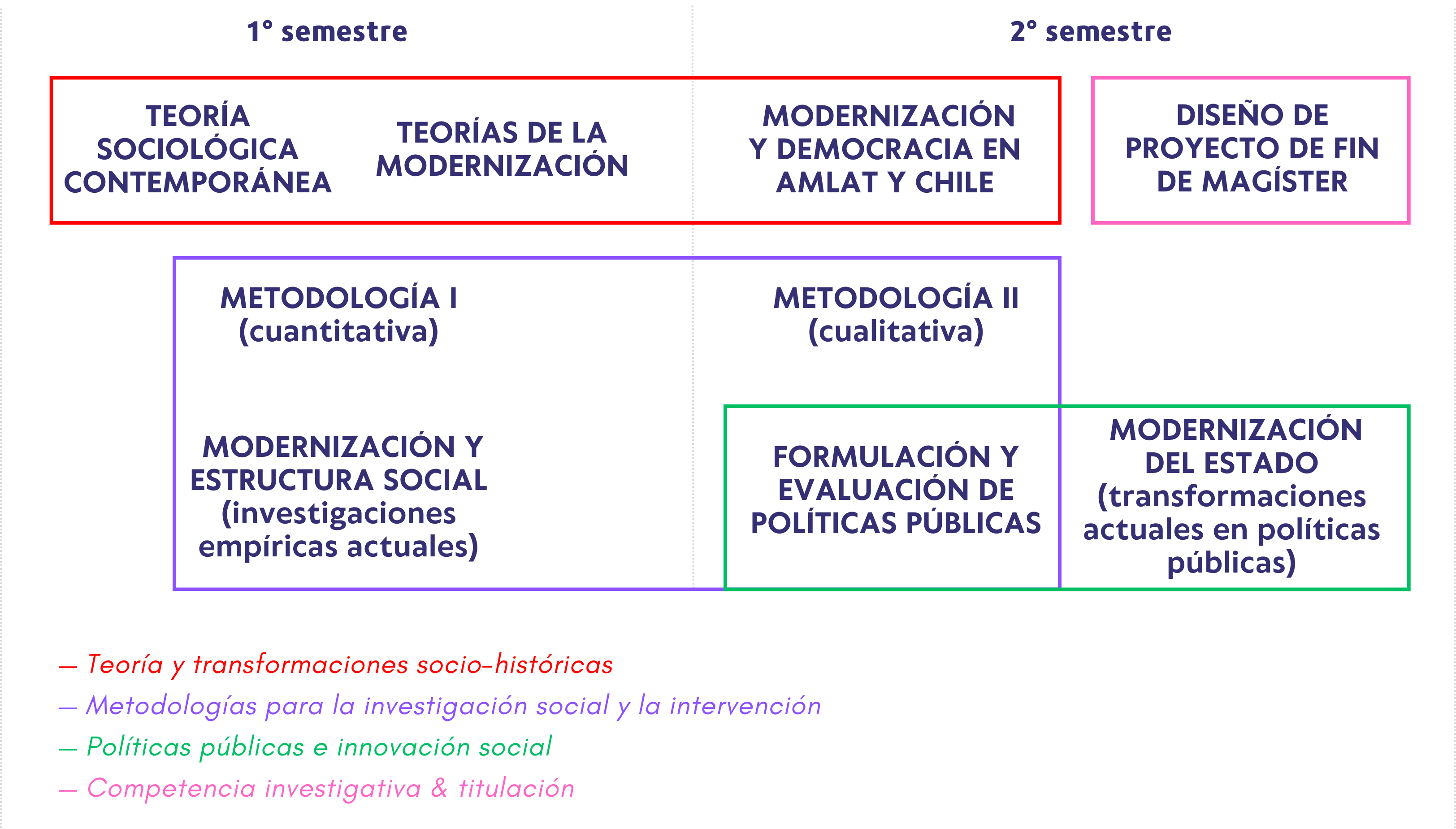 *Previo al inicio de clases en la quincena de marzo, en ese mismo mes existe un periodo de introducción a la vida académica del Magíster e integración a la comunidad del Departamento de Sociología y la Facultad de Ciencias Sociales.
