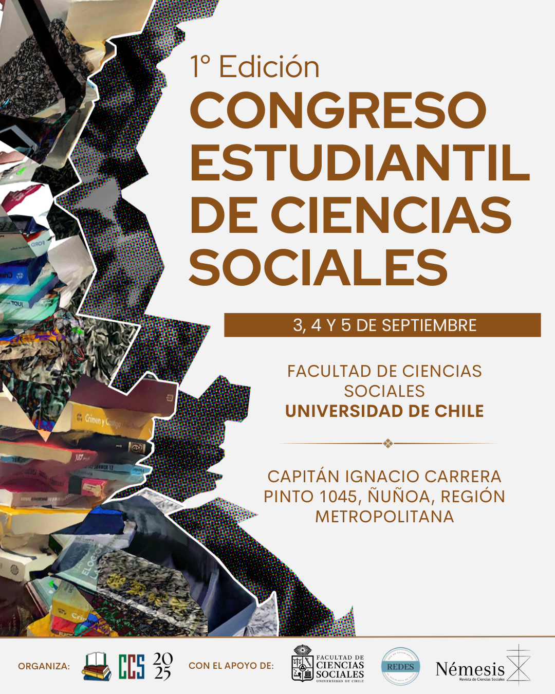 Los días 03, 04 y 05 2025 se realizará el Primer Congreso Estudiantil de Ciencias Sociales, en el Auditorio Julieta Kirkwood y en dependencias de la Facultad de Cs. Sociales, desde las 09.00 horas.
