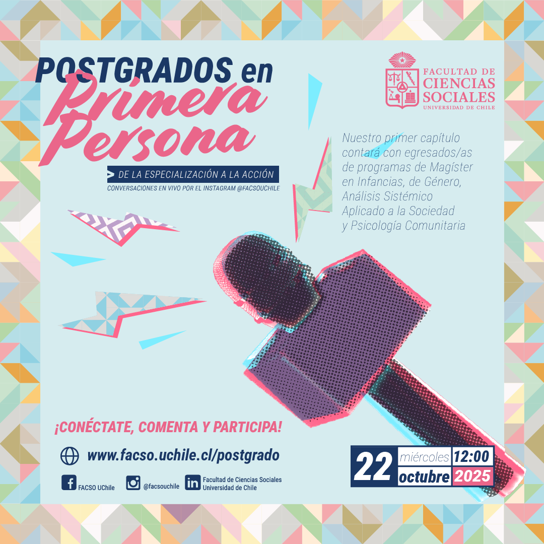 Invitamos a la Conversación en formato de transmisión en vivo "Postgrados en Primera Persona: De la especialización a la acción. Conversaciones en vivo por el Instagram @facsouchile"