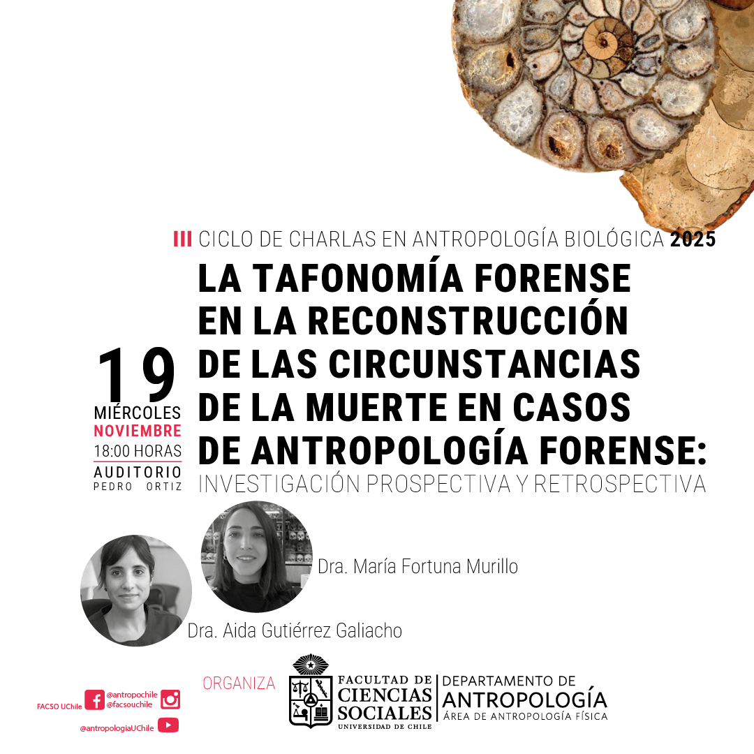 El próximo 19 de noviembre 2025, se realizará la 8va jornada del III Ciclo de Charlas en Antropología Biológica. En esta ocasión, se presentarán la Dra. Aida Gutiérrez Galiacho, y la Dra. María Fortuna Murillo, investigadoras independientes.