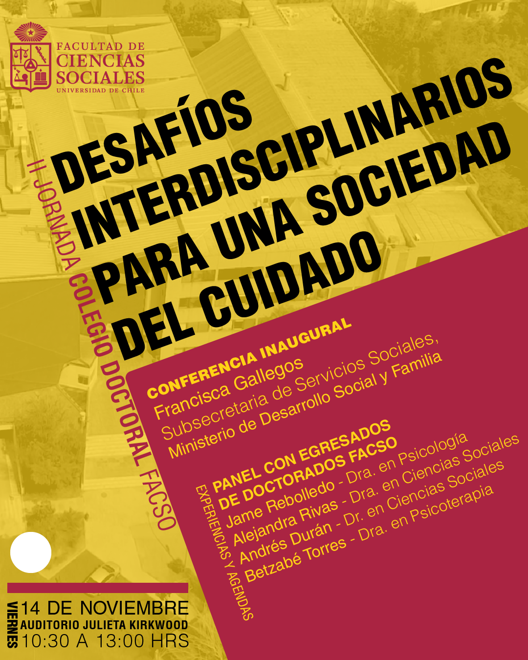 El próximo 14 de noviembre 2025, se realizará la II Jornada del Colegio Doctoral “Desafíos Interdisciplinarios para una sociedad del cuidado”, a las 10.30 horas en el Auditorio Julieta Kirkwood, organizado por la Escuela de Postgrado de la Facultad de Ciencias Sociales de la Universidad de Chile.