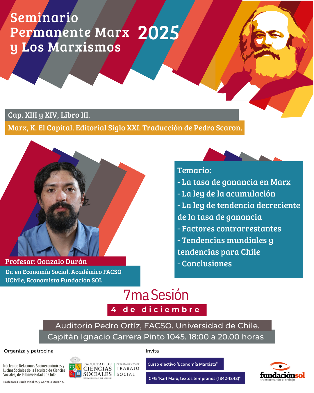 El próximo 04 de diciembre 2025 se realizará el Seminario Permanente Marx y Los Marxismos 2025, a las 18.00 horas en el Auditorio Pedro Ortiz de la Facultad de Ciencias Sociales de la Universidad de Chile.