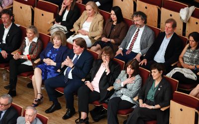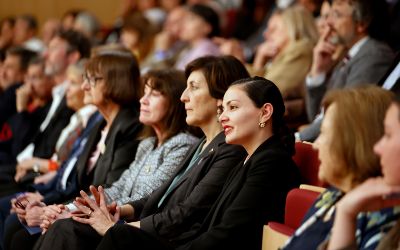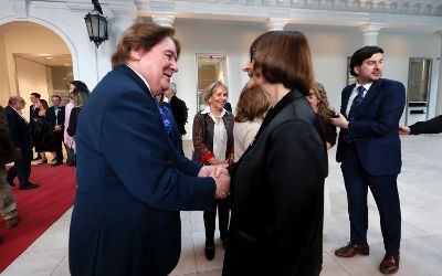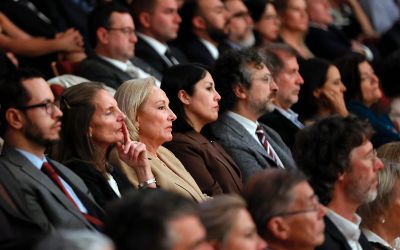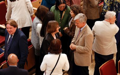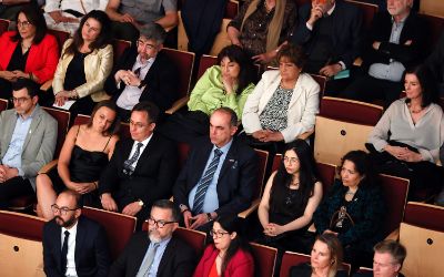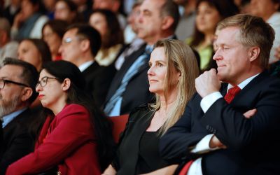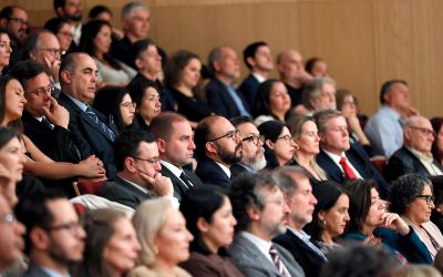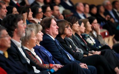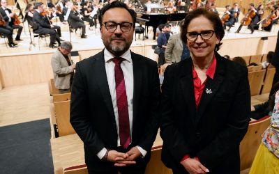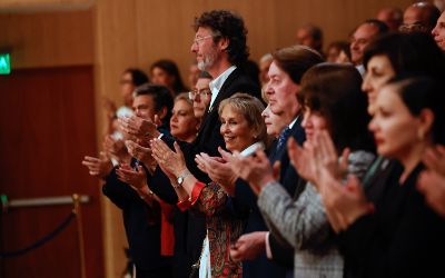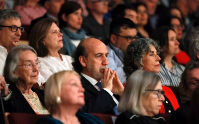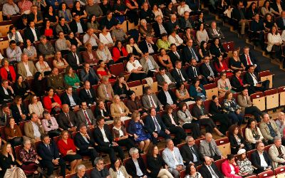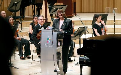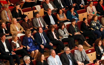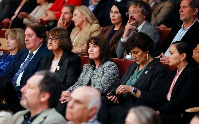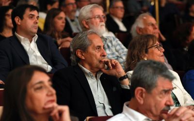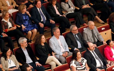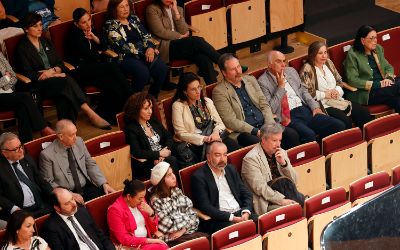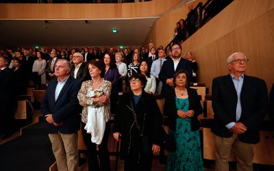 El tradicional encuentro, momento fundamental de la semana de aniversario, se realizó en el nuevo recinto inaugurado este año en el Complejo Universitario VM20. En la ocasión, la Orquesta Sinfónica Nacional y la Camerata Vocal de U. de Chile interpretaron una especial edición conmemorativa del himno de la Casa de Estudios.