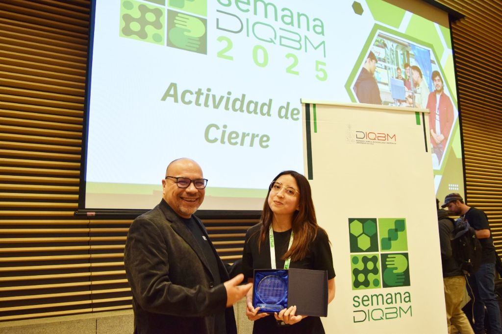 Las premiaciones realizadas en el marco de la Semana del DIQBM reunieron a la comunidad en un espacio de reconocimiento y celebración. La jornada destacó a docentes y profesoras y profesores auxiliares por su dedicación, a funcionarias y funcionarios por su apoyo permanente, y a estudiantes que sobresalieron por su excelencia académica. También se reconoció a los y las deportistas del departamento y a las ganadoras del concurso fotográfico. Un reconocimiento especial fue otorgado a Francisca Ramírez, estudiante del DIQBM, por su liderazgo y compromiso en la organización de la semana, que permitió consolidar una actividad participativa y representativa de toda la comunidad.