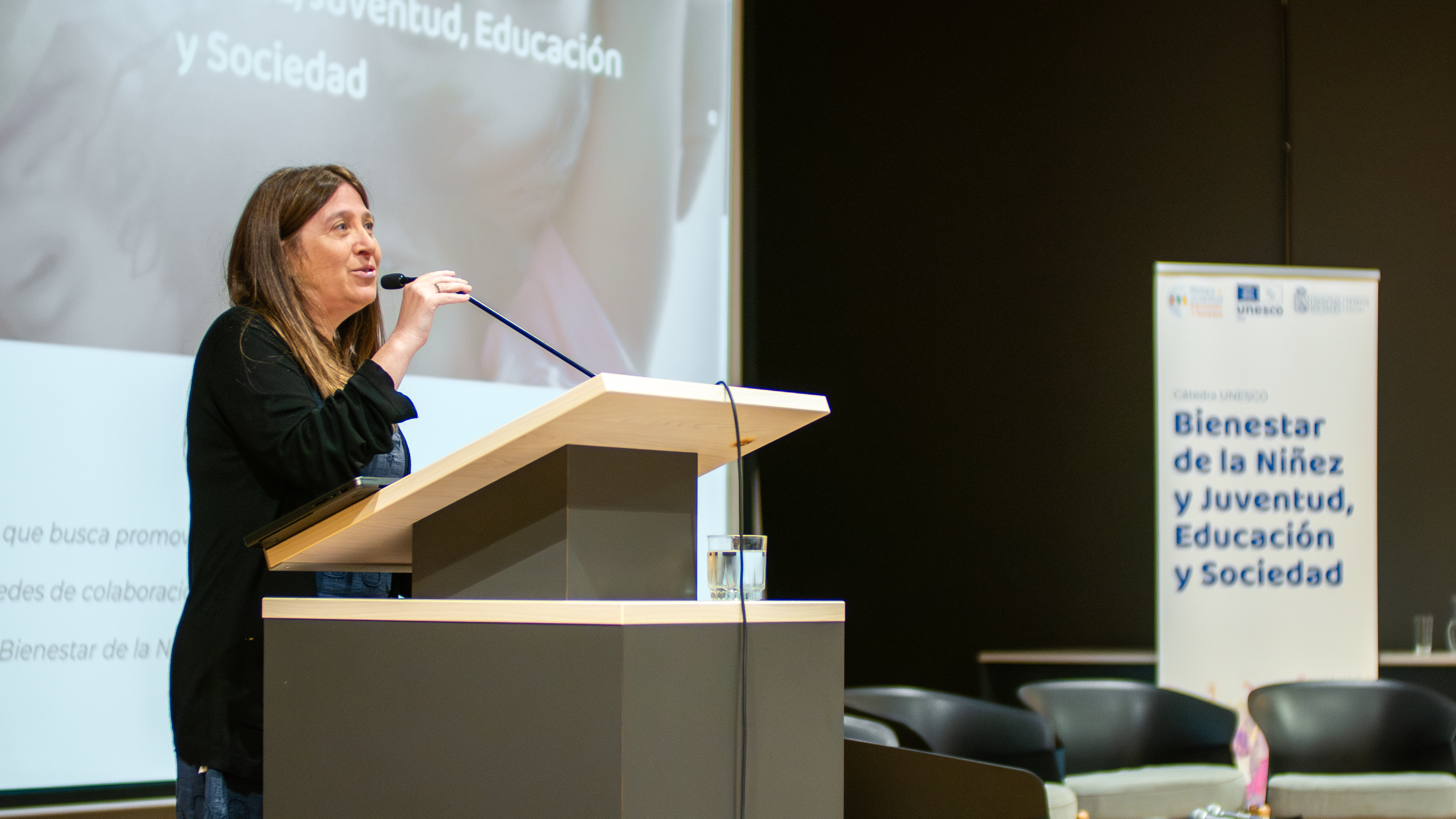 Por su parte, Mahia Saracostti, académica del Departamento de Trabajo Social y directora de dicha Cátedra UNESCO, saludó a todos/as los/as asistentes, pero especialmente a los/as niños/as presentes en la sala. “Hoy celebramos la renovación de la catedra UNESCO. Las cátedras UNESCO constituyen redes universitarias con incidencia pública y orientadas a los grandes desafíos de nuestros tiempos como son la educación inclusiva y el desarrollo sustentable, entre otros”. También abre la posibilidad de articular saberes académicos y no académicos en pos de sociedades más sostenibles.
