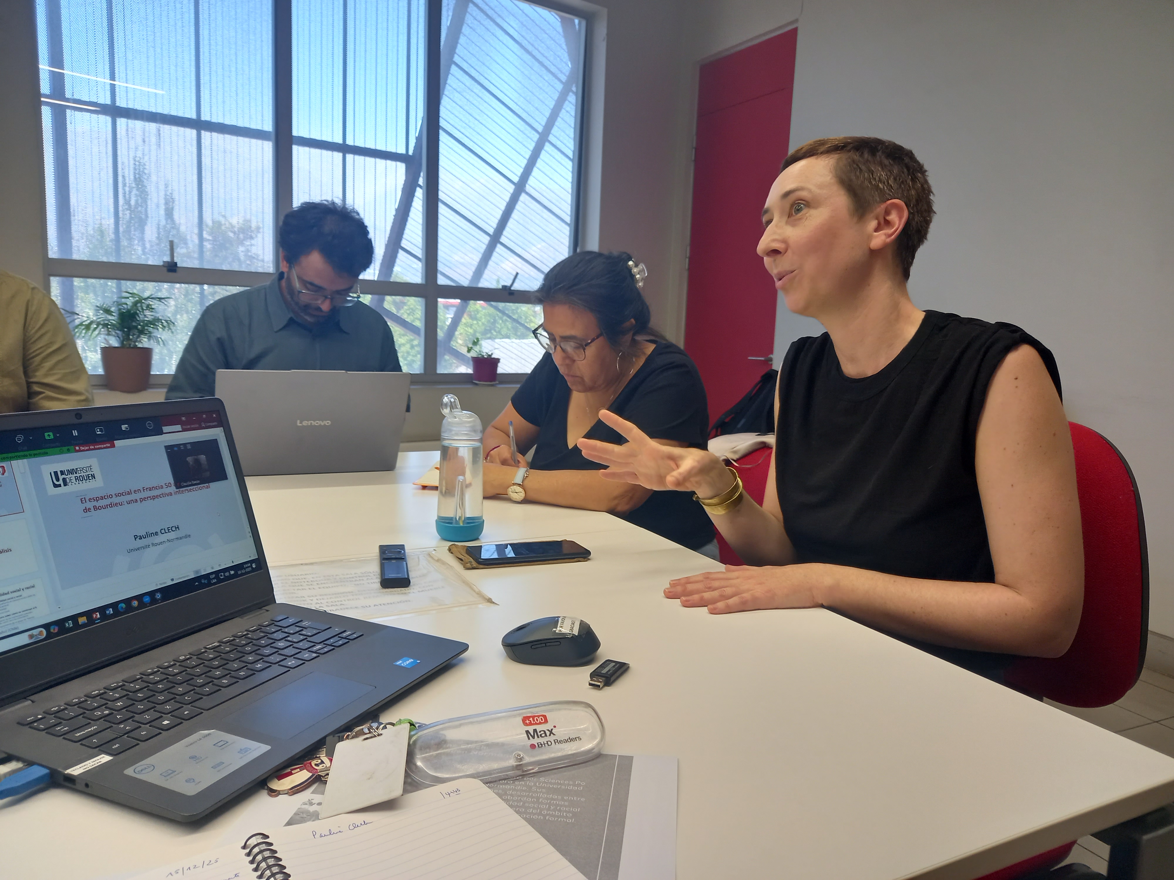 La actividad abordó una actualización del análisis del espacio social francés desde un enfoque bourdiano e interseccional, incorporando variables como origen migratorio, raza, género y territorio, y poniendo énfasis en trayectorias atípicas de movilidad social. A partir de investigaciones cualitativas y cuantitativas, la presentación exploró los mecanismos contemporáneos de reproducción social y las transformaciones del capital cultural en contextos marcados por el neoliberalismo, estableciendo además cruces comparativos con la realidad chilena.