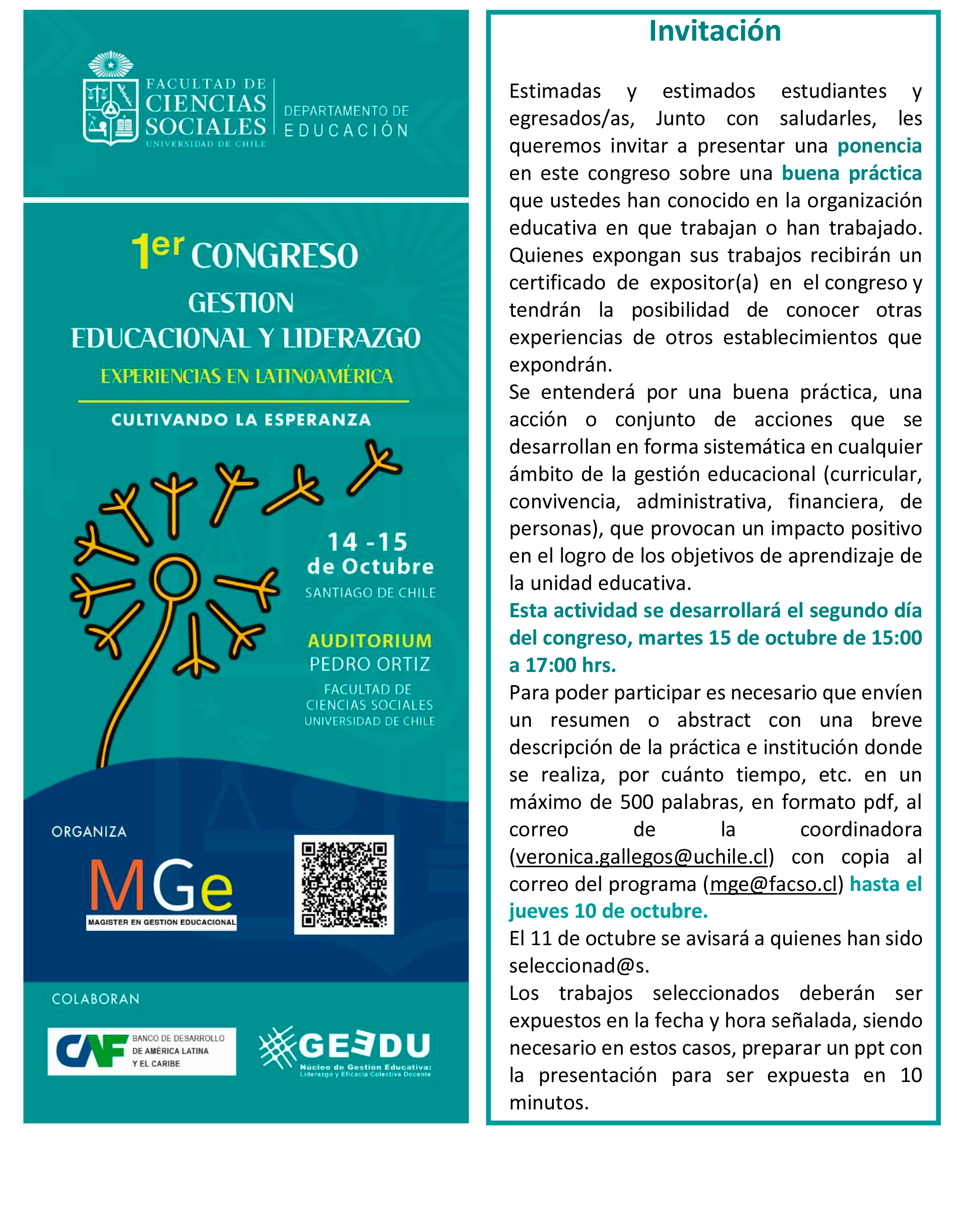 Invitación a Ponencias 1er. Congreso Gestión Educacional y Liderazgo